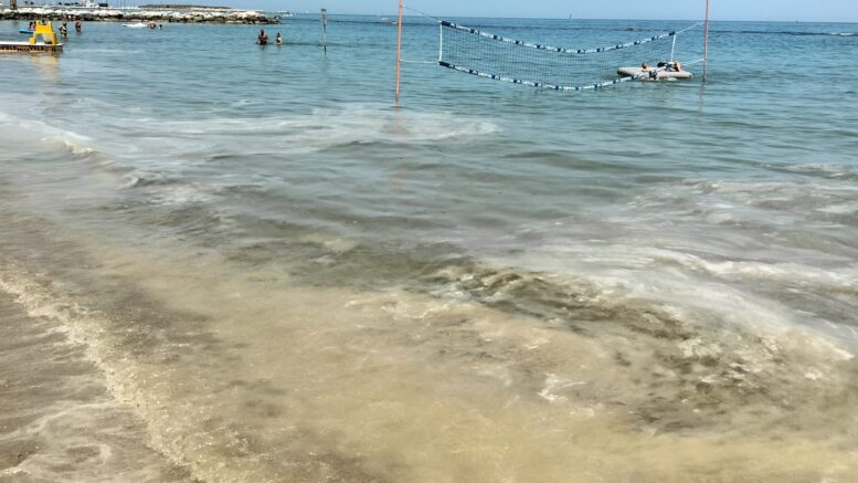 Al largo di Francavilla al Mare, nella giornata di ieri, è stata osservata una striscia di mucillagine entro 300 metri dalla linea di costa, di circa 5 metri di larghezza e lunga decine di metri, accumulata lungo il fronte di corrente. Oggi le alghe sono presenti su quasi tutta la costa, creando apprensione e preoccupazione tra i bagnanti. A tal proposito, si ricorda che non c’è alcun pericolo per l’uomo, a parte la sensazione fastidiosa e, in rari casi, il prurito che può procurare il contatto con i “macrofiocchi” di mucillagine. Nei giorni scorsi il fenomeno, proveniente dal Veneto, era stato osservato lungo le coste marchigiane.