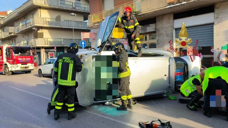 Alle ore 17.00 circa una squadra dei Vigili del fuoco di Pescara è intervenuta in via Del Circuito per incidente stradale. Una vettura con a bordo il solo conducente, di 75anni, si è ribaltata rimanendo su un fianco sulla carreggiata