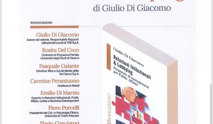 Organizzato dalla Fondazione Europa Prossima e dall’Officina, del Deputato On. Luciano D’Alfonso, sabato a Pescara incontro sul tema del lobbying nel panorama nazionale ed internazionale: ospiti e relatori dialogheranno con l’autore del volume Giulio di Giacomo