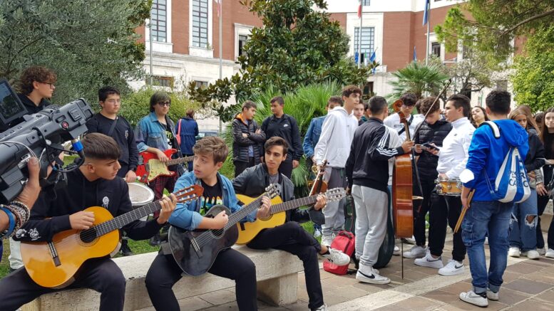Una protesta in musica è quella inscenata questa mattina a Pescara dagli studenti del Liceo Musicale: con i loro strumenti, insieme ai genitori, hanno organizzato un sit-in davanti al Palazzo della Provincia per sensibilizzare l’opinione pubblica sui gravi disagi innescati della decisione del dirigente scolastico, Raffaella Cocco e del presidente della Provincia Ottavio De Martinis di spostare le lezioni pomeridiane di strumento, Musica d’Insieme e Coro, da viale Kennedy a via Einaudi