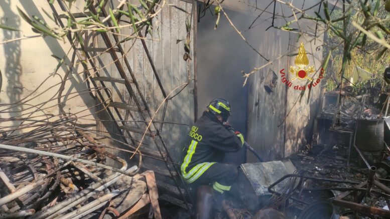Alle ore 10.45 circa una squadra dei Vigili del Fuoco di Pescara è intervenuta in via D’Agostino a Pescara colli per l’incendio di una rimessa di attrezzature agricole