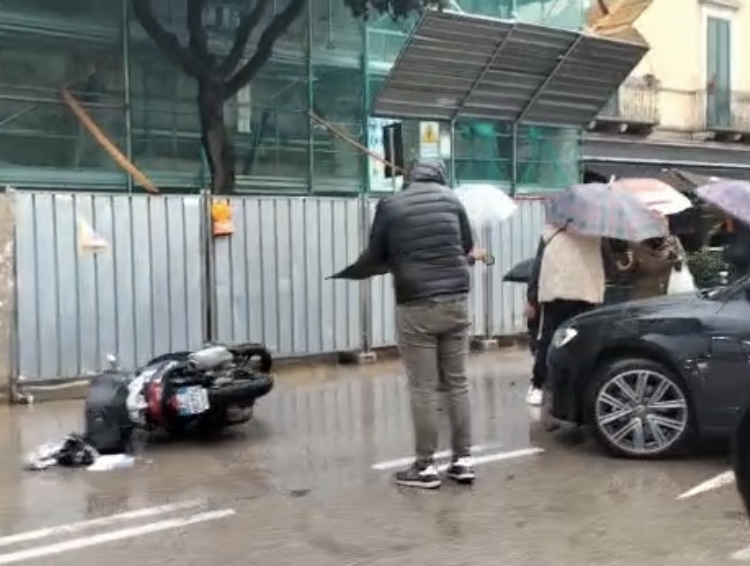 Sull’asfalto, reso viscido dalla forte pioggia, la scivolata di una moto il cui conducente è rimasto a terra. L’automobilista coinvolto e diverse altre persone hanno immediatamente prestato soccorso. Il tutto è accaduto in corso Vittorio Emanuele, all’altezza di piazza della Repubblica (ex stazione ferroviaria). I primi soccorsi sono stati chiamati dai tanti testimoni presenti nella zona.