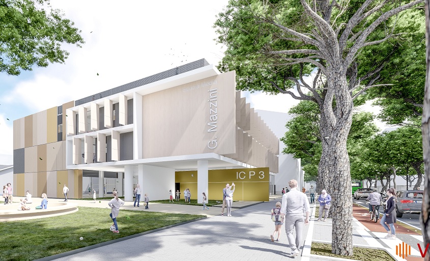 L’amministrazione Comunale di Pescara, su un progetto curato da Proger e Vaccarini Architects, presenta un nuovo concetto di scuola pubblica: un “semplice” intervento di riqualificazione di un edificio scolastico diventa l’occasione per un progetto di rigenerazione urbana dell’isolato e per la realizzazione di un edificio sostenibile a misura di studente. In due anni, con un investimento di oltre 6 milioni di euro (5 con un mutuo presso la Bei e un milione di fondi dell’ente) sorgerà un nuovo edificio scolastico – così come il governo cittadino in carica aveva annunciato – per la scuola secondaria di primo grado Giuseppe Mazzini di Pescara. L’intervento è stato presentato questa mattina nel corso di un incontro con i giornalisti e con la comunità scolastica dell’istituto comprensivo 3, cui hanno partecipato, in sala consiliare, il sindaco Carlo Masci, l’assessore all’Edilizia Scolastica Gianni Santilli, il presidente di Proger (società di ingegneria) Umberto Sgambati e il fondatore di Giovanni Vaccarini Architects, Giovanni Vaccarini.