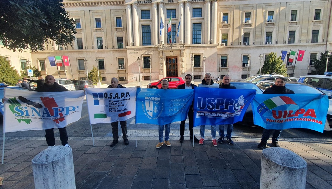 Si sono ritrovati puntuali stamani dinanzi il Palazzo del Governo in Piazza Italia a Pescara i rappresentanti dei sindacati penitenziari abruzzesi del Sappe, Sinappe, Osapp, Uilpapp, Uspp, Fns Cisl e Fpc Cgil, per denunciare le criticità che vivono quotidianamente nella casa circondariale di San Donato a Pescara