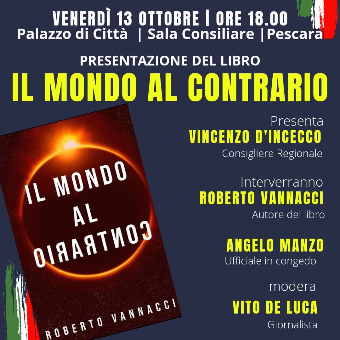 Venerdì, 13 ottobre, alle 18 nella sala consiliare del comune il consigliere regionale Vincenzo D’Incecco presenterà il libro “Il mondo al contrario” con l’autore Roberto Vannacci