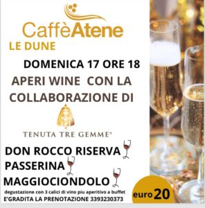 Dalle 18 di oggi brindisi e degustazioni di vini abruzzesi al Caffe Atene delle Dune: un aperi wine di festa in collaborazione con Tenuta Tre Gemme
