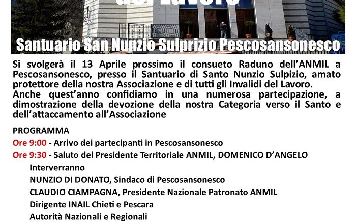Domani, 23 aprile, a Pescosansonesco, nel Santuario del Santo Nunzio Sulpizio, il tradizionale raduno nell’ANMIL, giunto alla 24esima edizione