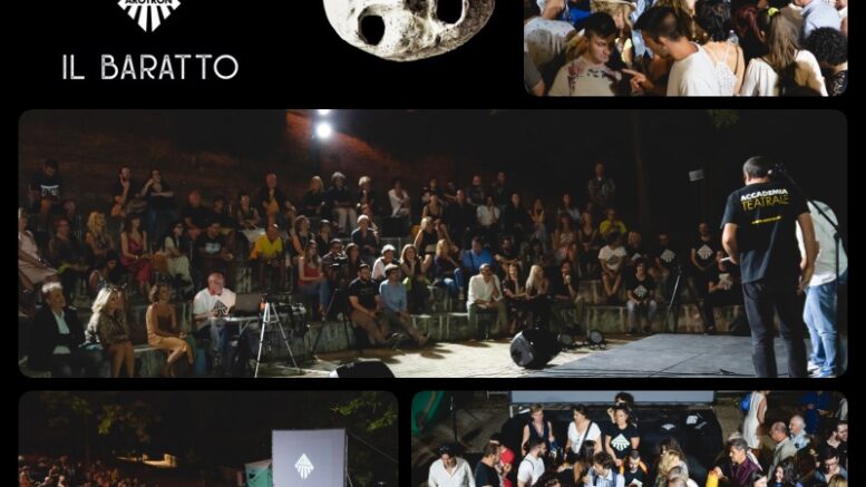 Dopo due anni di stop causato dalla pandemia, a Pianella torna “Il Baratto”, organizzato dall’Accademia teatrale Arotron. Lo scambio avviene tra gli artisti che offrono un saggio della loro arte durante le tre serate del festival e gli spettatori che ricambiano con cibi e bevande da condividere dopo lo spettacolo. Ieri la serata inaugurale del festival che andrà avanti fino a domani