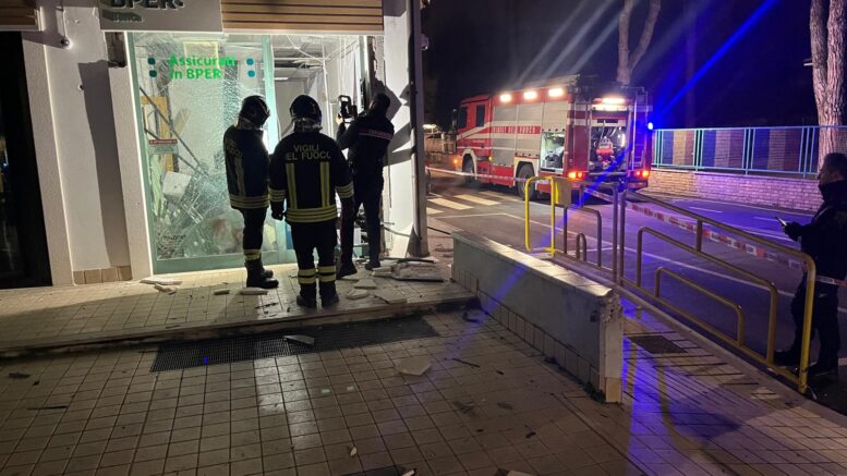 I vigili del fuoco, appena giunti sul posto, hanno verificato che un edificio condominiale, composto da quattro piani fuori terra, è stato interessato da un’esplosione che si è verificata in un sportello bancomat della banca posta al piano terra. La violenza dell’onda d’urto prodotta dalla detonazione ha provocato la rottura delle vetrate con alcune parti che sono state proiettate in strada ad alcuni metri di distanza. All’interno della banca sono cadute porzioni del controsoffitto, tramezzi ed arredi. Il terminale bancomat non è stato rinvenuto sul posto. Nei locali della banca i vigili del fuoco hanno rimosso gli elementi pericolanti ed effettuato rilievi con il rilevatore di gas portatile in dotazione, per accertare l’assenza di residui di gas esplosivo, presumibilmente impiegato per scardinare il terminale bancomat. Sono stati verificati anche i locali dell’appartamento sovrastante senza rilevare danni. Sul posto sono intervenuti i Carabinieri di Giulianova, Roseto e Pineto per effettuare gli accertamenti e le indagini sull’accaduto.