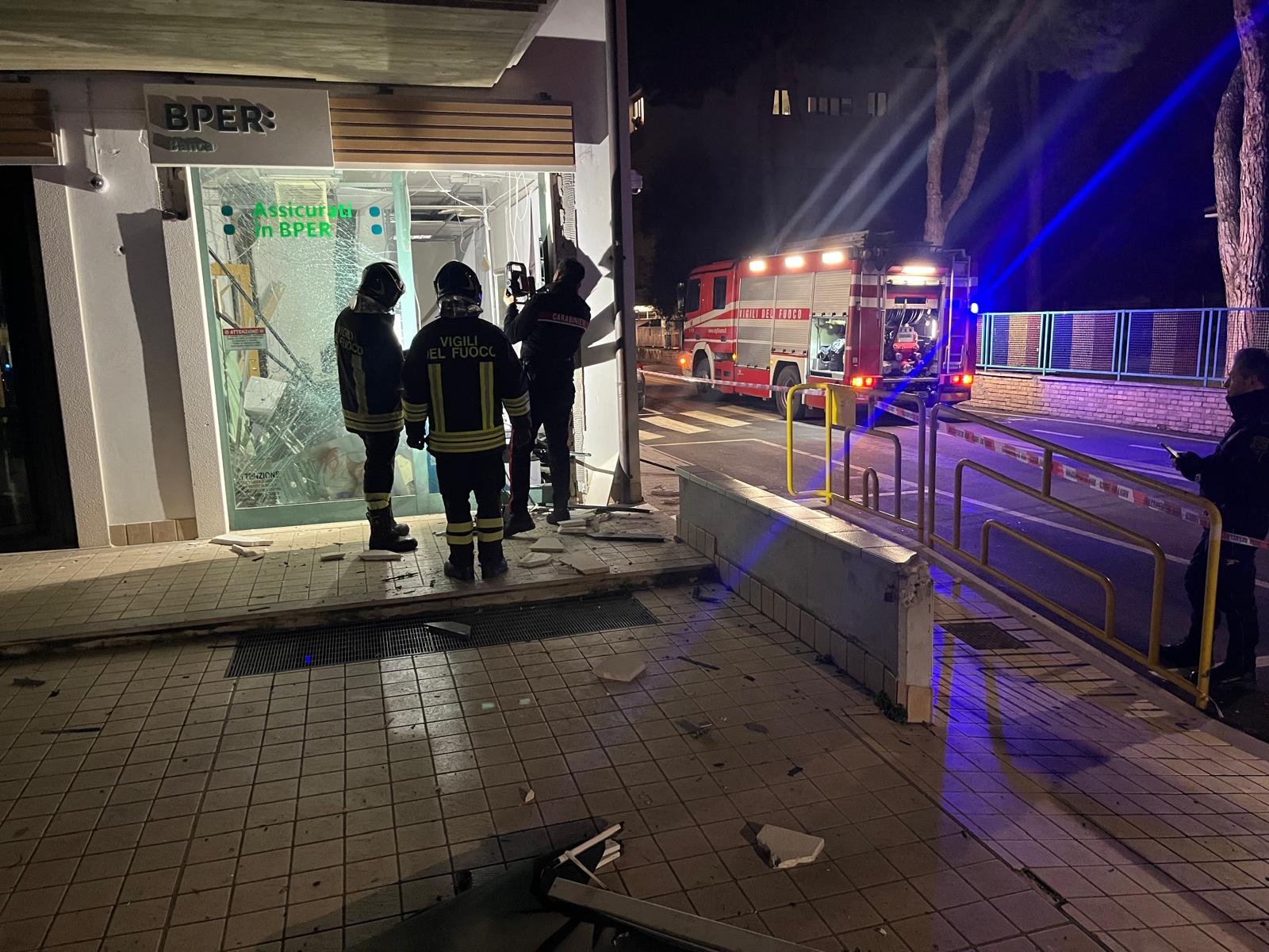 I vigili del fuoco, appena giunti sul posto, hanno verificato che un edificio condominiale, composto da quattro piani fuori terra, è stato interessato da un’esplosione che si è verificata in un sportello bancomat della banca posta al piano terra. La violenza dell’onda d’urto prodotta dalla detonazione ha provocato la rottura delle vetrate con alcune parti che sono state proiettate in strada ad alcuni metri di distanza. All’interno della banca sono cadute porzioni del controsoffitto, tramezzi ed arredi. Il terminale bancomat non è stato rinvenuto sul posto. Nei locali della banca i vigili del fuoco hanno rimosso gli elementi pericolanti ed effettuato rilievi con il rilevatore di gas portatile in dotazione, per accertare l’assenza di residui di gas esplosivo, presumibilmente impiegato per scardinare il terminale bancomat. Sono stati verificati anche i locali dell’appartamento sovrastante senza rilevare danni. Sul posto sono intervenuti i Carabinieri di Giulianova, Roseto e Pineto per effettuare gli accertamenti e le indagini sull’accaduto.