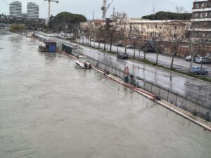 Nelle foto a lato scattate da Antonella Micolitti il fiume all’alba di oggi (sopra), alle 10 (a lato) e alle 11 (sotto). Nell’ultima il livello dell’acqua appare più critico.