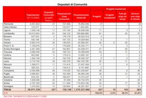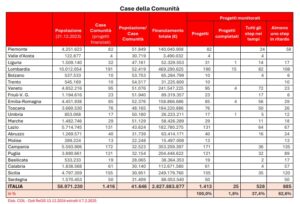 In Abruzzo, 1.269.571 abitanti, i progetti finanziati per le Case di Comunità sono 40, gli euro assegnati sono 63.414.171, ma al momento il raggiungimento dell’obiettivo è ben lontano, secondo il report della Cgil elaborato a febbraio.