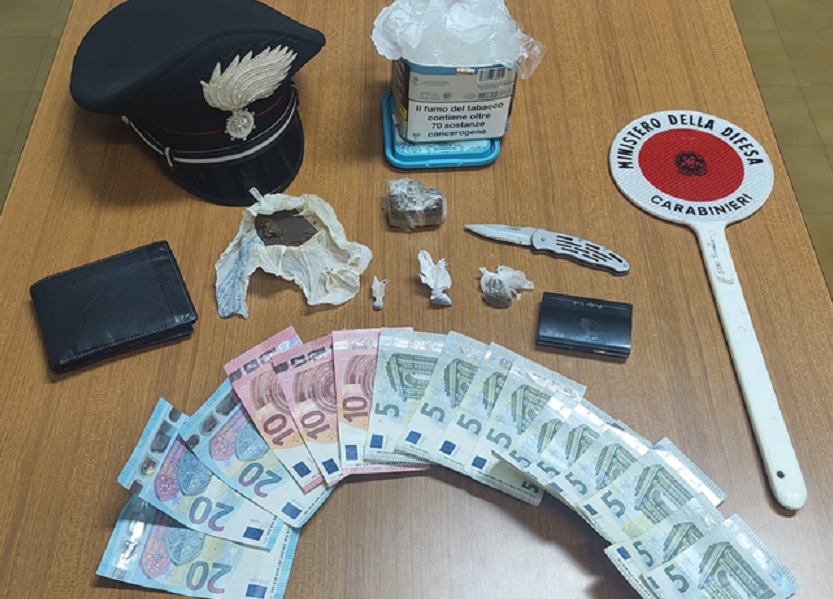 I successivi accertamenti, hanno consentito anche di identificare il fornitore, un 19enne del luogo, che è stato rintracciato presso la propria abitazione e trovato in possesso di altri 60 grammi della stessa sostanza, già suddivisa in tre pezzi, materiale per il confezionamento e la somma in contanti di 140 euro in banconote di piccolo taglio, poste sotto sequestro in quanto ritenute provento dello spaccio di stupefacenti. Il 19enne è stato, pertanto, dichiarato in stato di arresto per il reato di detenzione ai fini di spaccio di sostanza stupefacente e posto a disposizione dell’Autorità Giudiziaria.