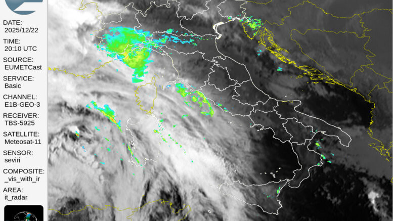 Sulla nostra penisola la pressione è in diminuzione a causa dell’arrivo di una perturbazione di origine atlantica che, a partire dalle prossime ore, interesserà anche le nostre regioni centrali con annuvolamenti consistenti, rovesci diffusi, venti in rinforzo e temperature in calo, con nevicate sui rilievi appenninici. Prevista, infatti, la formazione di una vasta area depressionaria sui nostri mari occidentali, in spostamento verso le regioni centro-settentrionali, che determinerà una fase di maltempo sull’Emilia-Romagna, sulle regioni tirreniche e sulle zone appenniniche delle nostre regioni centrali. Alla base dei dati attuali il peggioramento si articolerà in diverse fasi, la prima caratterizzata da precipitazioni intensificazione sul Lazio e sulle zone interne di Marche, Abruzzo e Molise, specie tra la tarda mattinata e il tardo pomeriggio; nella seconda fase, tra stasera-notte e la mattinata della Vigilia di Natale, il peggioramento si estenderà verso il settore adriatico del Molise, della nostra regione e, soprattutto, sulle Marche, dove le precipitazioni potrebbero risultare anche di moderata intensità, con venti orientali o sud-orientali in rinforzo. Ampie schiarite potrebbero riguardare il settore adriatico della nostra regione, specie tra la Vigilia e la giornata di Natale, mentre annuvolamenti e precipitazioni continueranno ad interessare il settore occidentale, in particolare la Marsica, l’Alto Sangro e, localmente l’Aquilano, con rovesci e nevicate sui rilievi appenninici intorno ai 1200-1400 metri, in temporaneo miglioramento nel corso della giornata. Dalla serata-nottata e nella giornata di Santo Stefano la perturbazione si sposterà nuovamente verso il Mediterraneo occidentale e, di conseguenza, richiamerà venti dai quadranti sud-orientali verso le nostre regioni adriatiche dove tornerà a manifestarsi un tempo uggioso con elevata probabilità di precipitazioni, specie lungo la fascia costiera e collinare. Si tratta di una previsione che potrà subire anche sostanziali variazioni: proprio per questo motivo si consiglia di seguire tutti gli aggiornamenti.
