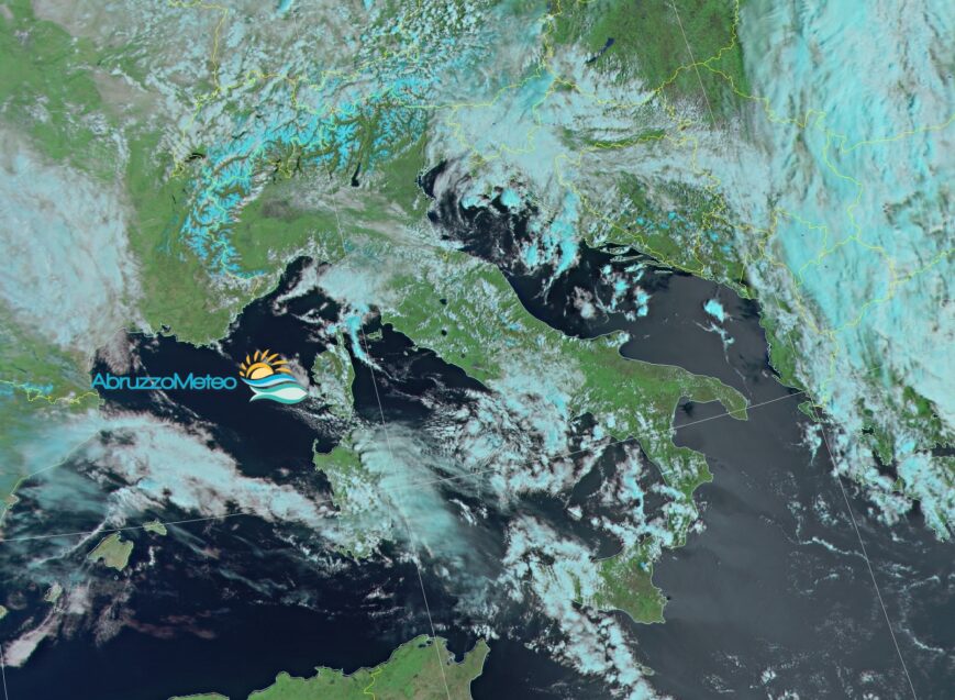 PREVISIONE: Sulla nostra regione si prevedono condizioni iniziali di cielo sereno o poco nuvoloso nel Teramano, nel Pescarese e nel Chietino, mentre annuvolamenti interesseranno la Marsica, l’Aquilano, l’Alto Sangro e la Valle Peligna ma senza fenomeni di rilievo. Durante le ore centrali della giornata e nel corso del pomeriggio saranno possibili addensamenti consistenti che, dalle zone interne e montuose, tenderanno ad estendersi verso le zone pedemontane e collinari che si affacciano sul versante adriatico, dove non si escludono rovesci a carattere sparso, in attenuazione in serata e in nottata. Tempo stabile nella giornata di domenica con prevalenza di cielo sereno o poco nuvoloso, specie al mattino, mentre annuvolamenti potranno manifestarsi nel pomeriggio, specie a ridosso dei rilievi e, localmente, sul versante adriatico.
