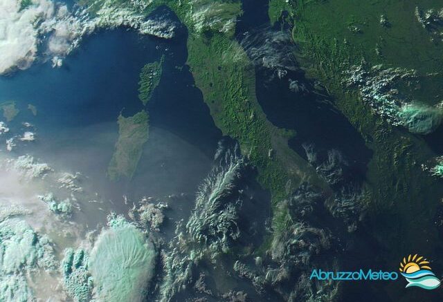 PREVISIONE: Sulla nostra regione si prevedono condizioni generali di cielo prevalentemente sereno o poco nuvoloso ma con la sabbia in sospensione che favorirà una colorazione biancastra del cielo. Atteso un nuovo aumento delle temperature e dei tassi di umidità con valori massimi che, sulla Valle Peligna, in Val Pescara, in Val di Sangro e, localmente, nell’Aquilano, potranno raggiungere i +36°C/+38°C. Un ulteriore aumento delle temperature è atteso tra martedì e mercoledì. Afa in aumento lungo la fascia costiera, dove i valori di temperatura saranno meno elevati rispetto alle zone interne. Poche novità nel corso della giornata di martedì.