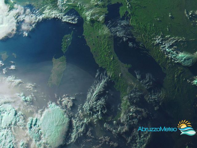 PREVISIONE: Sulla nostra regione si prevedono condizioni generali di cielo prevalentemente sereno o poco nuvoloso ma con la sabbia in sospensione che favorirà una colorazione biancastra del cielo. Atteso un nuovo aumento delle temperature e dei tassi di umidità con valori massimi che, sulla Valle Peligna, in Val Pescara, in Val di Sangro e, localmente, nell’Aquilano, potranno raggiungere i +36°C/+38°C. Un ulteriore aumento delle temperature è atteso tra martedì e mercoledì. Afa in aumento lungo la fascia costiera, dove i valori di temperatura saranno meno elevati rispetto alle zone interne. Poche novità nel corso della giornata di martedì.