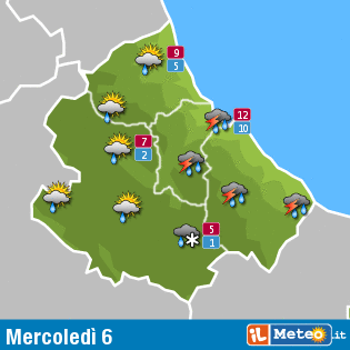 Rovesci temporaleschi, dunque, a Pescara e Provincia. Vento da NO con intensità di 8 km/h. Raffiche fino a 17 km/h. Temperature minime comprese tra 5 e 10 °C e massime comprese tra 8 e 12 °C. Quota 0°C a 1600 metri. temporali anche sul Litorale chietino – vastese. I venti saranno prevalentemente deboli e soffieranno da Nord-Nord-Ovest con intensità di 8 km/h. Possibili raffiche fino a 18 km/h. Temperature minime comprese tra 5 e 10 °C e massime comprese tra 9 e 12 °C. Quota 0°C a 1650 metri. Pioggia mista a neve, invece, nell’aquilano. I venti saranno prevalentemente deboli e soffieranno da WNW con intensità di 7 km/h. Possibili raffiche fino a 22 km/h. Temperature minime comprese tra -5 e 6 °C e massime comprese tra -1 e 11 °C. Quota 0°C a 1550 metri, quota neve a 1500 metri. Situazione migliore, invece, nel teramano con deboli rovesci di pioggia. I venti saranno prevalentemente deboli e soffieranno da Sud con intensità di 8 km/h. Possibili raffiche fino a 19 km/h. Temperature minime comprese tra 4 e 8 °C e massime comprese tra 9 e 12 °C. Quota 0°C a 1950 metri, neve a 1900 metri.