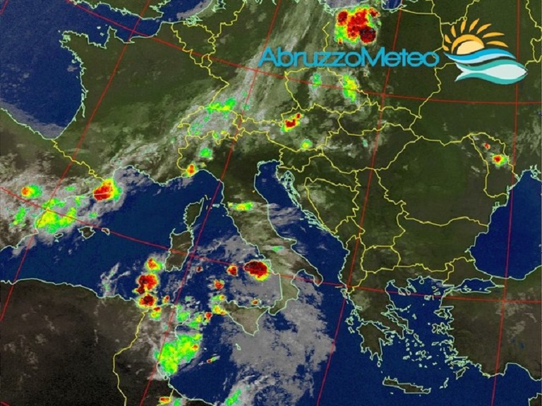Tuttavia nelle prossime ore l’instabilità si estenderà anche sulle regioni centrali, mentre un sistema nuvoloso di origine atlantica raggiungerà le nostre regioni settentrionali dal pomeriggio-sera, favorendo un moderato peggioramento delle condizioni atmosferiche dapprima al nord, in estensione verso le regioni centrali in serata-nottata e nelle prime ore della mattinata di martedì, con rovesci e manifestazioni temporalesche in graduale intensificazione. Il transito della perturbazione favorirà anche una graduale diminuzione delle temperature su gran parte delle regioni adriatiche, a causa delle precipitazioni previste e dei venti settentrionali in rinforzo; un temporaneo miglioramento delle condizioni atmosferiche è previsto nella giornata di mercoledì con ampie schiarite e possibili annuvolamenti lungo la dorsale appenninica durante le ore centrali della giornata e nel corso del pomeriggio, tuttavia gli ultimi aggiornamenti dei modelli matematici evidenziano un nuovo probabile peggioramento delle condizioni atmosferiche tra venerdì e sabato, a causa del transito di un sistema nuvoloso di origine atlantica che potrà favorire nuovi episodi di instabilità anche sulla nostra regione: vedremo. PREVISIONE: Sulla nostra regione si prevedono condizioni iniziali di cielo parzialmente nuvoloso o nuvoloso con possibili schiarite nel corso della mattinata, tuttavia dal pomeriggio assisteremo allo sviluppo di addensamenti consistenti a ridosso dei rilievi, associati a rovesci e a manifestazioni temporalesche, localmente di moderata intensità, in estensione verso le zone pedecollinari e verso le aree costiere entro la serata. Rovesci e temporali potranno manifestarsi anche in tarda serata-nottata e torneranno ad intensificarsi nel corso della mattinata di martedì, in particolare sulle zone collinari e costiere, in estensione verso le restanti zone nel corso della giornata; non si escludono fenomeni di forte intensità, accompagnati da raffiche di vento. Temperature: Stazionarie ma ancora al disopra delle medie stagionali; da stasera-notte è prevista una graduale diminuzione che proseguirà nella giornata di martedì. Venti: Deboli a regime di brezza con possibili colpi di vento durante i temporali. Da domani tenderanno a provenire dai quadranti nord-orientali rinforzando. Mare: Generalmente quasi calmo o poco mosso con moto ondoso in temporaneo aumento durante le ore centrali della giornata. Moto ondoso in aumento nella giornata di martedì.