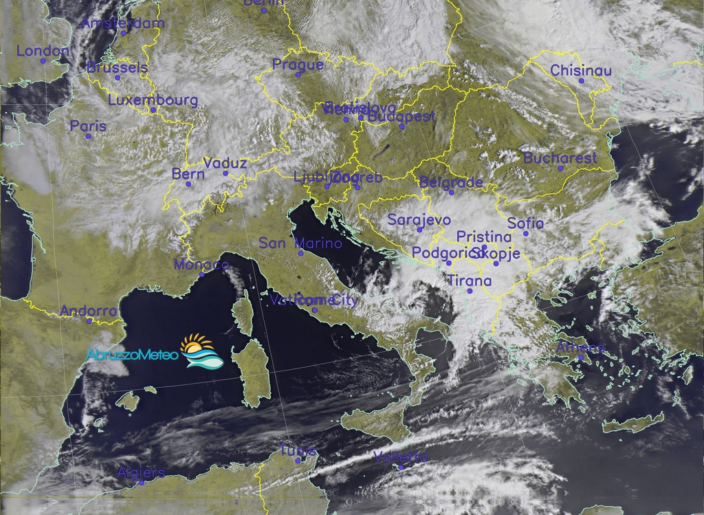 Sulla nostra regione si prevedono condizioni iniziali di cielo sereno o poco nuvoloso con possibili annuvolamenti al mattino nell’Aquilano, specie a ridosso dei rilievi; nel corso della giornata è previsto un graduale aumento della nuvolosità dalla tarda mattinata e nel corso del pomeriggio