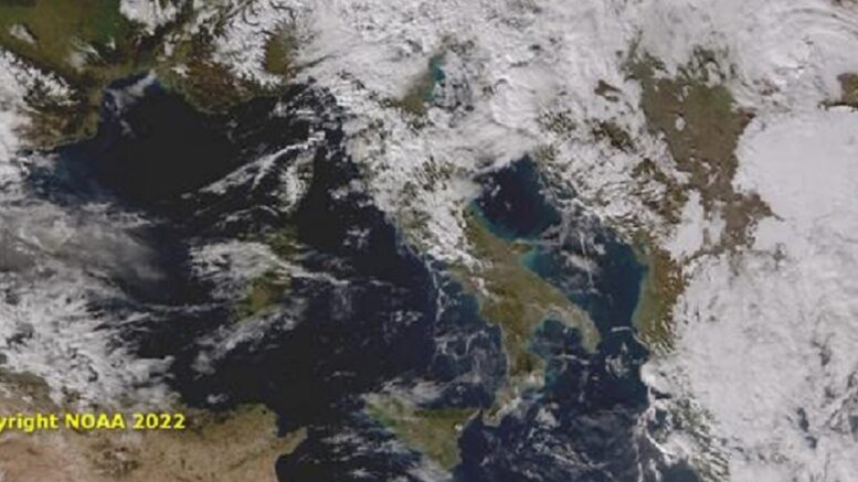 La nostra penisola risulta interessata dall’arrivo di masse d’aria umida di origine atlantica in senso alle quali si muovono corpi nuvolosi che raggiungono gran parte delle regioni centro-meridionali