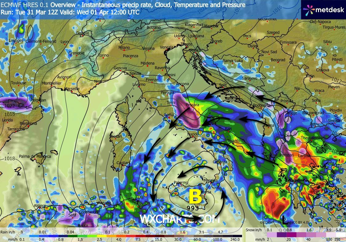 L’intensa ondata di maltempo continuerà ad interessare gran parte delle nostre regioni adriatiche con piogge diffuse, abbondanti nevicate sui rilievi, forti venti di Grecale e mareggiate. Graduale miglioramento da venerdì e nel fine settimana di Pasqua
