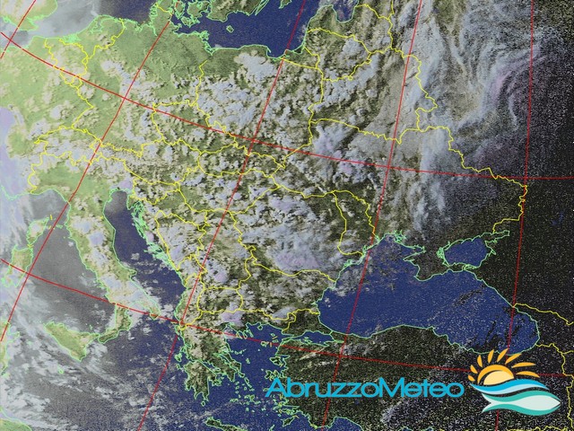 PREVISIONE: Sulla nostra regione si prevedono condizioni iniziali di cielo prevalentemente sereno o poco nuvoloso con annuvolamenti consistenti in sviluppo sulle zone montuose, localmente associati a rovesci sparsi, in estensione verso le zone pedecollinari del Teramano, del Pescarese e del Chietino, in attenuazione nel tardo pomeriggio-sera.