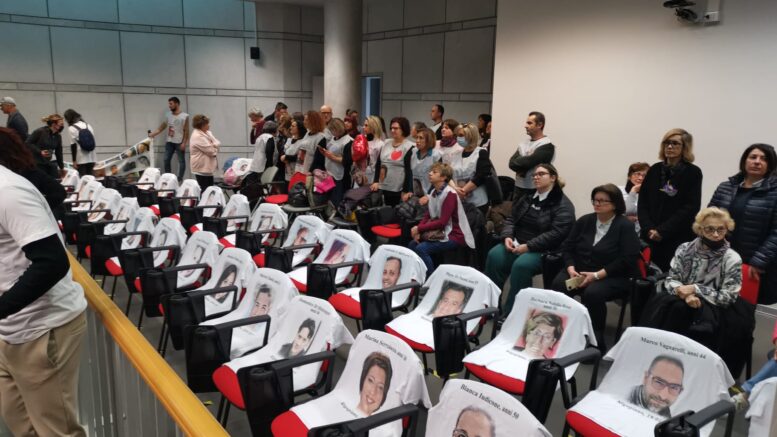 Un grande striscione all’ingresso del Tribunale di Pescara nel ricordo delle 29 vittime dell’Hotel Rigopiano è comparso nel giorno della sentenza di primo grado che dovrebbe giungere non prima delle 17. Tutti presenti i parenti delle vittime ed anche diversi superstiti tra cui Giampiero Matrone ed il cuoco Giampiero Parete il primo che diede l’allarme quel pomeriggio del 18 gennaio 2017. L’udienza è iniziata con l’appello del giudice.