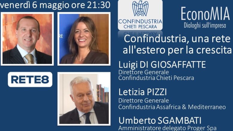 Venerdì 6 maggio alle ore 21:30 “#EconoMIA, dialoghi sull’impresa”, format tv di Confindustria Chieti Pescara e Rete8, per una nuova puntata dedicata al tema “Confindustria, una rete all’estero per la crescita”