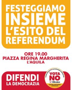 A L’Aquila appuntamento in piazza Regina Margherita alle ore 19, dove i fautori del No festeggiano successo al referendu