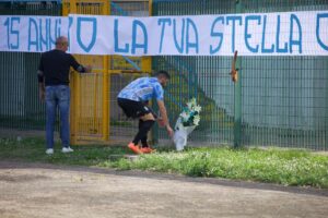 Oggi pomeriggio, in occasione del 15° anniversario del sisma, e della gara di Promozione tra Lauretum e Rosetana, lo stadio “Acciavatti” gli ha tributato un lungo strisione e commoventi cori. Al papà, Tommaso, la società di casa ha donato una maglia e un gagliardetto: a consegnarli Valerio Vianale, il capitano, che ha poi deposto un mazzo di fiori sotto lo striscione esposto dai tifosi. Grande commozione, lacrime e la sensazione che il dolore sia ancora troppo grande da sopportare per tutte le persone che hanno amato Giuseppe, Francesca e tutte le vittime del sisma del 2009.