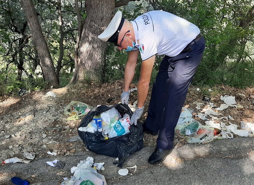 Via Don Minzoni, blitz degli agenti della Polizia Municipale di Teramo per scovare chi deposita rifiuti fuori dai cassonetti.