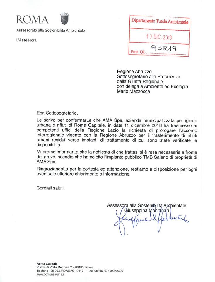 Visti i tempi, potrebbe essere scambiata per la letterina a Babbo Natale quella recapitata alla Regione Abruzzo dal Comune di Roma. Il “regalo” richiesto però è l’opposto dei profumi e dei balocchi che spesso si mettono sotto l’albero… soprattutto dei profumi, visto che parliamo di spazzatura. Il Comune di Roma, per mano dell’assessore alla sostenibilità Giuseppina Montanari, ha deciso di uscire allo scoperto per chiedere ufficialmente aiuto all’Abruzzo, anche in conseguenza delle esplicite dichiarazioni del presidente vicario della giunta abruzzese, Giovanni Lolli, secondo il quale la richiesta dell’Ama, la società comunale dei rifiuti, e quella della Regione Lazio non possono essere ritenute sufficienti. Se concesso, sarà un aiuto in proroga, visto che prolungherebbe l’accordo già esistente, che scade alla fine del 2018. La richiesta della giunta Raggi riguarda la possibilità di inviare in Abruzzo, nel 2019, altre 70.000 tonnellate di rifiuti romani, poiché la Capitale, che già presentava delle criticità, ora è decisamente in affanno a causa dell’incendio che ha distrutto l’impianto TMB Salario.