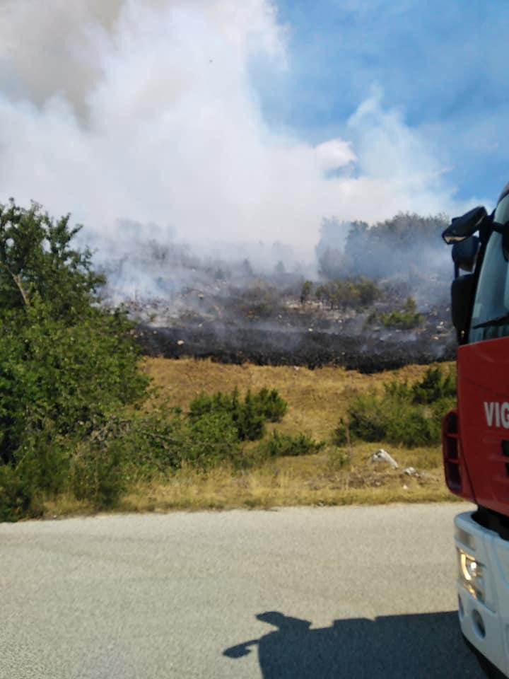 Precisamente siamo al bivio per Secinaro: le fiamme dalla strada si sono alzate. Sul posto vigili del fuoco e protezione civile, montata anche la vasca per le operazioni di rifornimento acqua. Vista la situazione si è richiesto l’intervento di un elicottero Erickson. Siamo in un territorio interno al parco Sirente Velino: ad ora sembra tutto sotto controllo ma la situazione viene ancora monitorata a causa del tanto vento che soffia dal mattino.