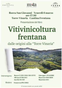 Sarà un luogo simbolo e carico di memoria ad accogliere un appuntamento che intreccia identità, storia, e territorio: venerdì 6 marzo alle ore 17.30, a Rocca San Giovanni, la Torre Vinaria della Cantina Frentana ospiterà la presentazione del volume La vitivinicoltura frentana. Dalle origini alla Torre Vinaria, pubblicato da Meta Edizioni e firmato da Rocco Cuzzucoli Crucitti e Silvino D’Ercole, con la prefazione del naturalista e botanico Aurelio Manzi.