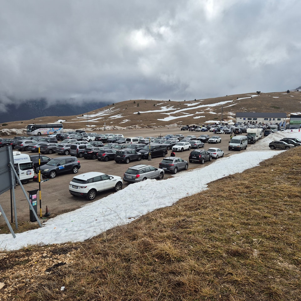 “Nessun disagio, nessun problema, purtroppo meno affluenza del solito. Il nostro pullman solo soletto nel parcheggio delle Gravare. Venite tranquillamente a sciare vi aspettiamo.” (Foto in evidenza)