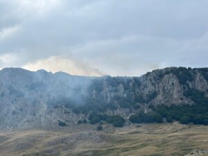 Molti dei roghi divampati oggi sono già stati domati. Tra quelli ancora in corso c’è l’incendio nella zona Monte Etra (tra Celano e Aielli, foto sotto) che sta richiedendo l’impiego dell’elicottero Cochise dei Vigili del Fuoco.