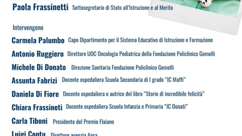 “L’istruzione ti salva la vita – Il diritto alla scuola in ospedale”: si terrà mercoledì 23 ottobre 2024 alle ore 10:00 presso la sala Aldo Moro del Ministero dell’Istruzione e del Merito (Viale Trastevere 76/a, Roma) l’iniziativa organizzata in collaborazione con Scuola in Ospedale del Policlinico Universitario Agostino Gemelli