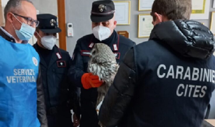 Nei giorni scorsi i militari della Stazione Carabinieri Forestale di Villa S. Maria, a seguito di una segnalazione della presenza nel centro abitato di Rosello, di un rapace notturno particolare e visibilmente “non autoctono”, hanno allertato il Nucleo Cites del Gruppo Carabinieri Forestale di Pescara che ha poi proceduto a sequestrare l’animale ed a deferire all’A.G. competente l’illecito detentore.