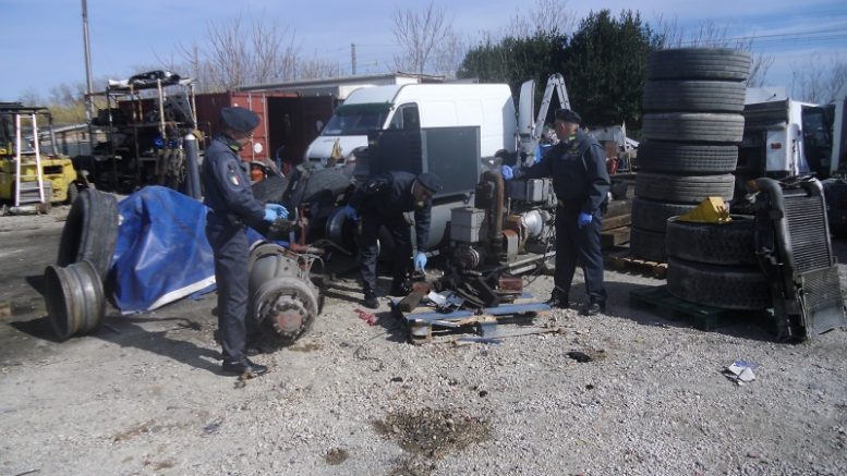 Oltre all’esercizio abusivo di autodemolizione, sono stati rinvenuti “a cielo aperto” ed esposti direttamente all’azione degli agenti atmosferici, rifiuti speciali pericolosi e non pericolosi quali scarti di olio minerale per motori, imballaggi contenenti residui di sostanze pericolose, materiali filtranti, veicoli fuori uso, metalli non ferrosi, veicoli e pneumatici fuori uso, ecc..