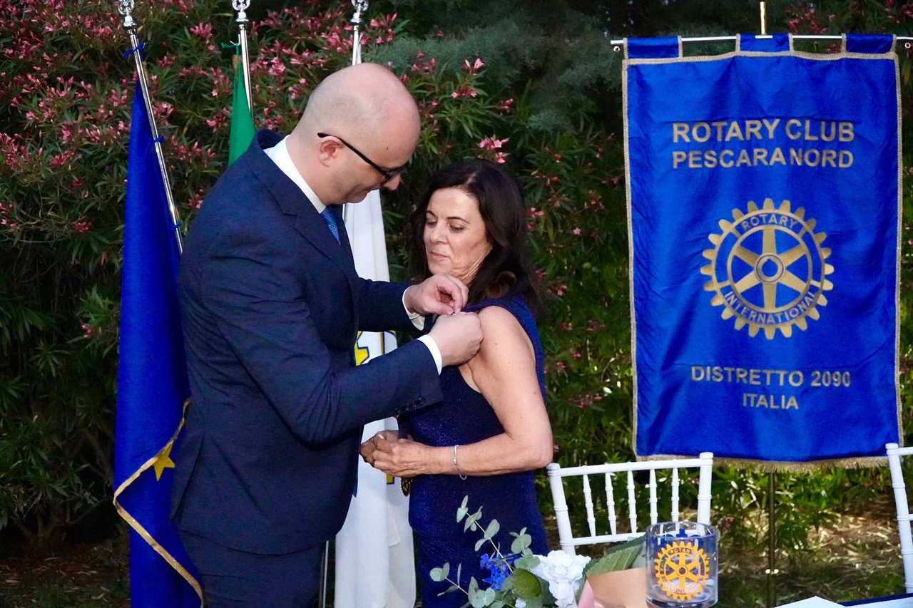 La neopresidente del Rotary Club Pescara Nord, Raffaella Nardinocchi, nel presentare le iniziative programmate nel corso dei prossimi dodici mesi, ha ricordato come sia cresciuta con i princìpi rotariani entrando a far parte del gruppo dei giovani del Rotaract nel 1980, e ha spiegato come il motto internazionale dell’anno “Unite for Good” identifica in pieno lo spirito di solidarietà e di servizio del Rotary, sia all’interno del club nel nome dell’amicizia e della condivisione, sia verso l’esterno dove si misura la capacità dei soci di operare insieme, ognuno per le proprie competenze, con l’obiettivo di contribuire a migliorare la vita delle persone in difficoltà.