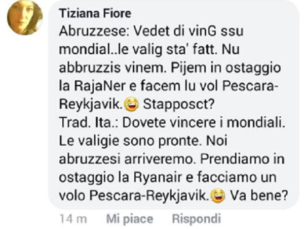 Per leggere gli altri commenti sulla Pagina Facebook della Nazionale islandese e magari lasciare anche un in bocca al lupo da Pescara e dall’Abruzzo: CLICCA QUI