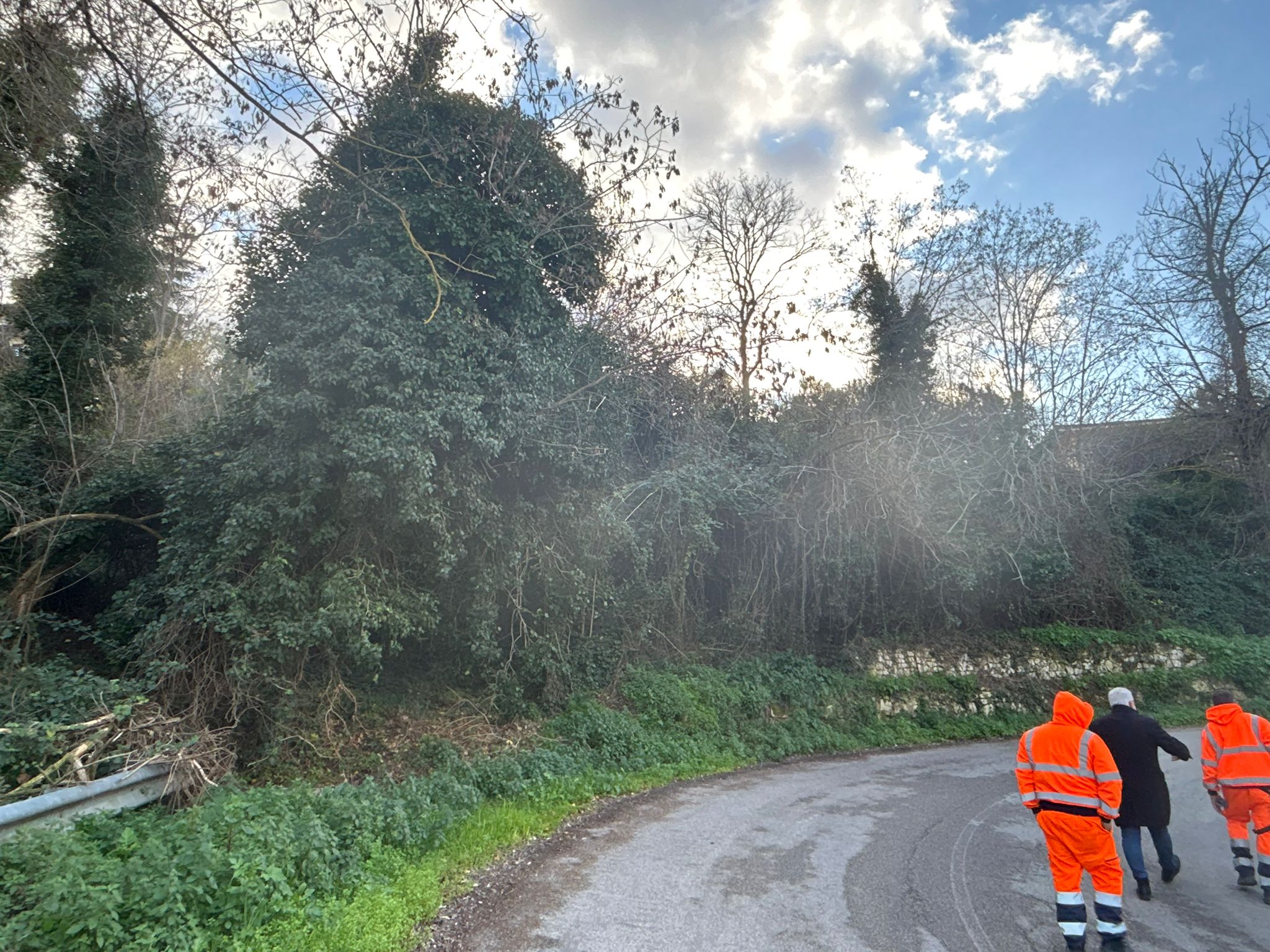 Sistemazione del verde lungo i bordi della strada, dove la vegetazione incolta riduce la visibilità e compromette la sicurezza stradale.