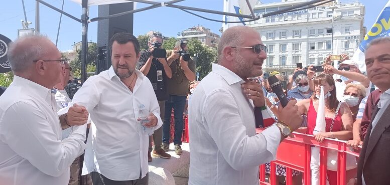 Il leader del Carroccio, al punto stampa allestito in largo Mediterraneo, dove ci sono i gazebo per raccogliere le firme per i referendum, è stato accolto da cittadini e turisti in vacanza e, tra i politici, dal sindaco di Pescara Carlo Masci, dal presidente del consiglio regionale Lorenzo Sospiri, dal senatore Nazario Pagano (coordinatore regionale di Forza Italia) e dall’assessore regionale della Lega Daniele D’Amario. Presente in piazza anche il neo presidente della Saga, la società che gestisce l’aeroporto d’Abruzzo, Vittorio Catone.