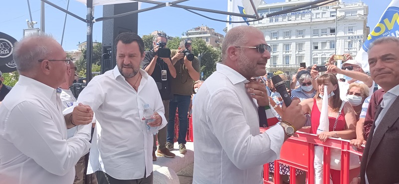 Il leader del Carroccio, al punto stampa allestito in largo Mediterraneo, dove ci sono i gazebo per raccogliere le firme per i referendum, è stato accolto da cittadini e turisti in vacanza e, tra i politici, dal sindaco di Pescara Carlo Masci, dal presidente del consiglio regionale Lorenzo Sospiri, dal senatore Nazario Pagano (coordinatore regionale di Forza Italia) e dall’assessore regionale della Lega Daniele D’Amario. Presente in piazza anche il neo presidente della Saga, la società che gestisce l’aeroporto d’Abruzzo, Vittorio Catone.