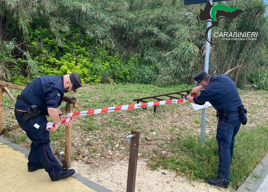 I Carabinieri della Tutela Forestale e Parchi sequestrano un’area illecitamente adibita ad attività commerciale lungo la pista ciclabile “Via verde Costa dei Trabocchi”