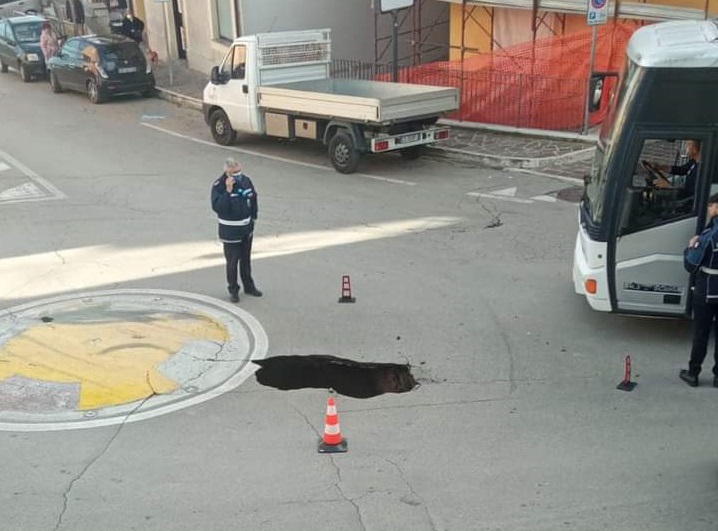 Fortunatamente non ci sono feriti. Lo smottamento si è creato improvvisamente all’altezza della rotonda d’ingresso a San Vito, con una profondità iniziale di 3 metri e altri 3 di circonferenza. Sul posto sono giunti i Vigili del fuoco di Lanciano, polizia locale, tecnici della Provincia di Chieti.