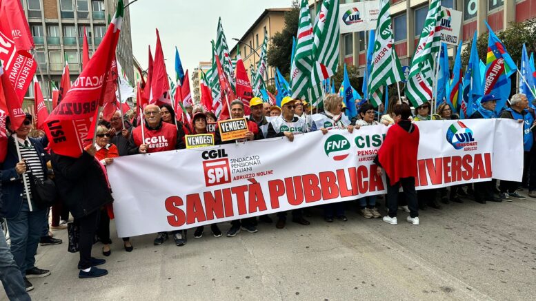 “120.000 abruzzesi rinunciano a curarsi”, ricordano i sindacati per motivare la mobilitazione: “L’Abruzzo è l’ultima regione d’Italia nel garantire i LEA. La Giunta Regionale, dopo aver sostenuto che il Modello Sanitario Regionale era da esportare, lo ha riempito di debiti. Per rimediare taglia ulteriormente i servizi, intanto aumentano le persone che vanno a curarsi in altre regioni e quelli che non possono curarsi, mentre nulla si è fatto concretamente sulle liste d’attesa”.