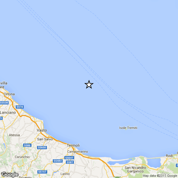 La scossa, di magnitudo 2.8, si é registrata a 10 chilometri di profondità precisamente alle ore 8.51, ora italiana, con epicentro a metà dalle coste di Ortona e Vasto. Con questa siamo arrivati a ben 21 scosse dalla prima registrata alle 4:21, ora italiana, di domenica scorsa.