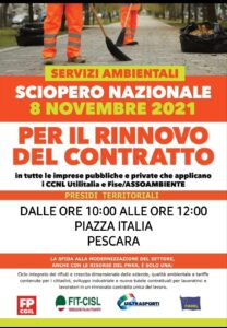 Sciopero oggi anche in Abruzzo dei lavoratori del settore ambiente e raccolta rifiuti per protestare contro il mancato rinnovo del contratto nazionale. A fine settembre c’era stata la rottura della trattativa. Garantiti solo i servizi minimi. Questa mattina sit-in di protesta a Pescara in Piazza Italia dove sotto la pioggia un centinaio di lavoratori ha manifestato pacificamente.